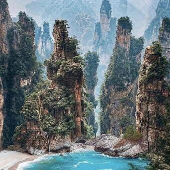 张家界的山,那叫一个绝!就像是老天爷用一把大刀削出来的,山峰直冲云霄,云雾缭绕,仿佛仙境。你要是喜欢探险,来这里准没错,电影《阿凡达》里的悬浮山就是这儿的灵感来源。